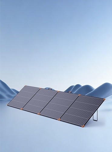 High-power foldable solar panel with an aluminum frame and ETFE surface, featuring monocrystalline silicon cells. PowerFold Series perfect for charging power stations, ideal for camping, RV trips, and mobile outdoor use.
