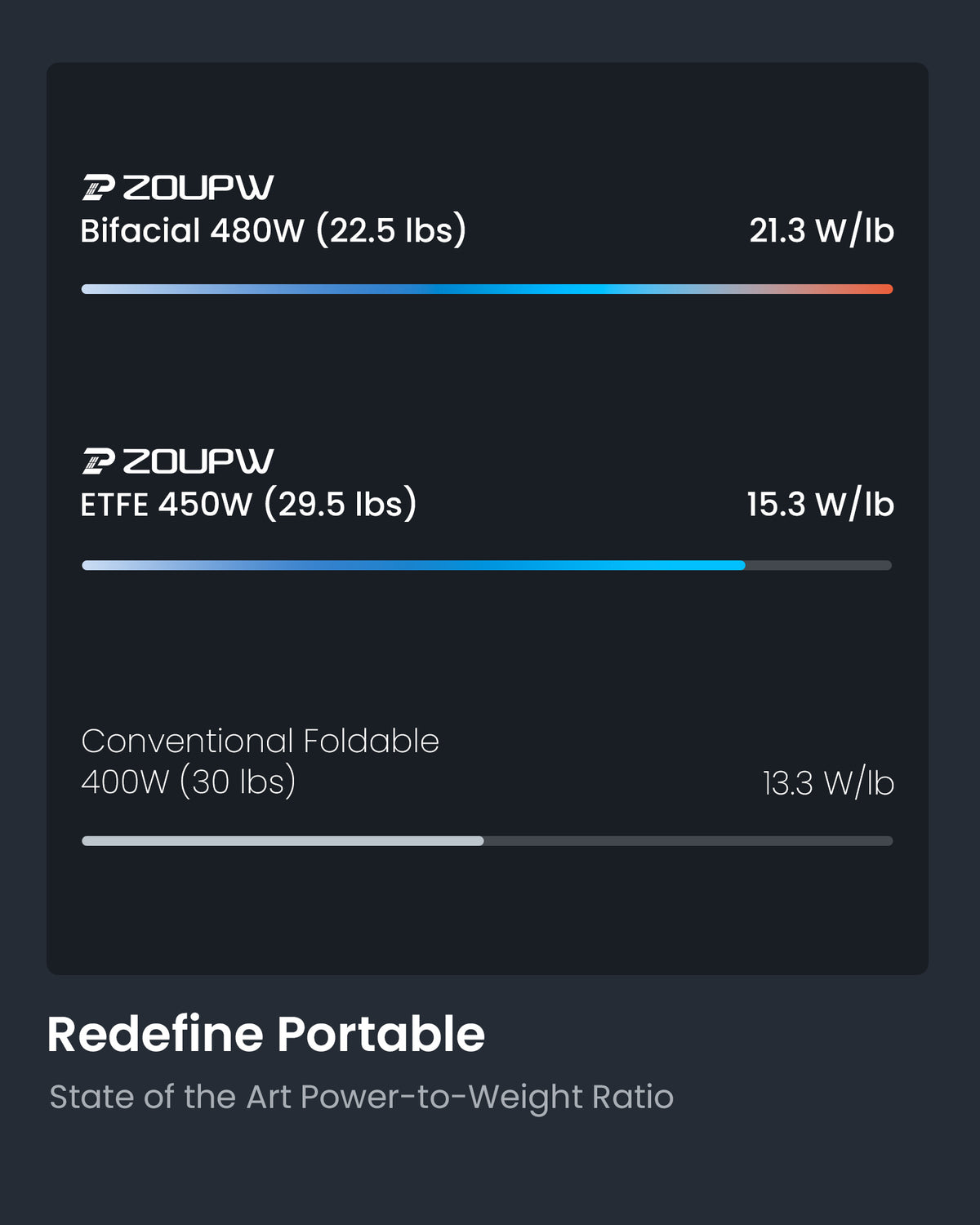 At just 22.5 lbs, this 480W solar panel delivers an industry-leading 21.3 W/lb, making it easier to transport, set up, and reposition than traditional foldable panels—without sacrificing power.
