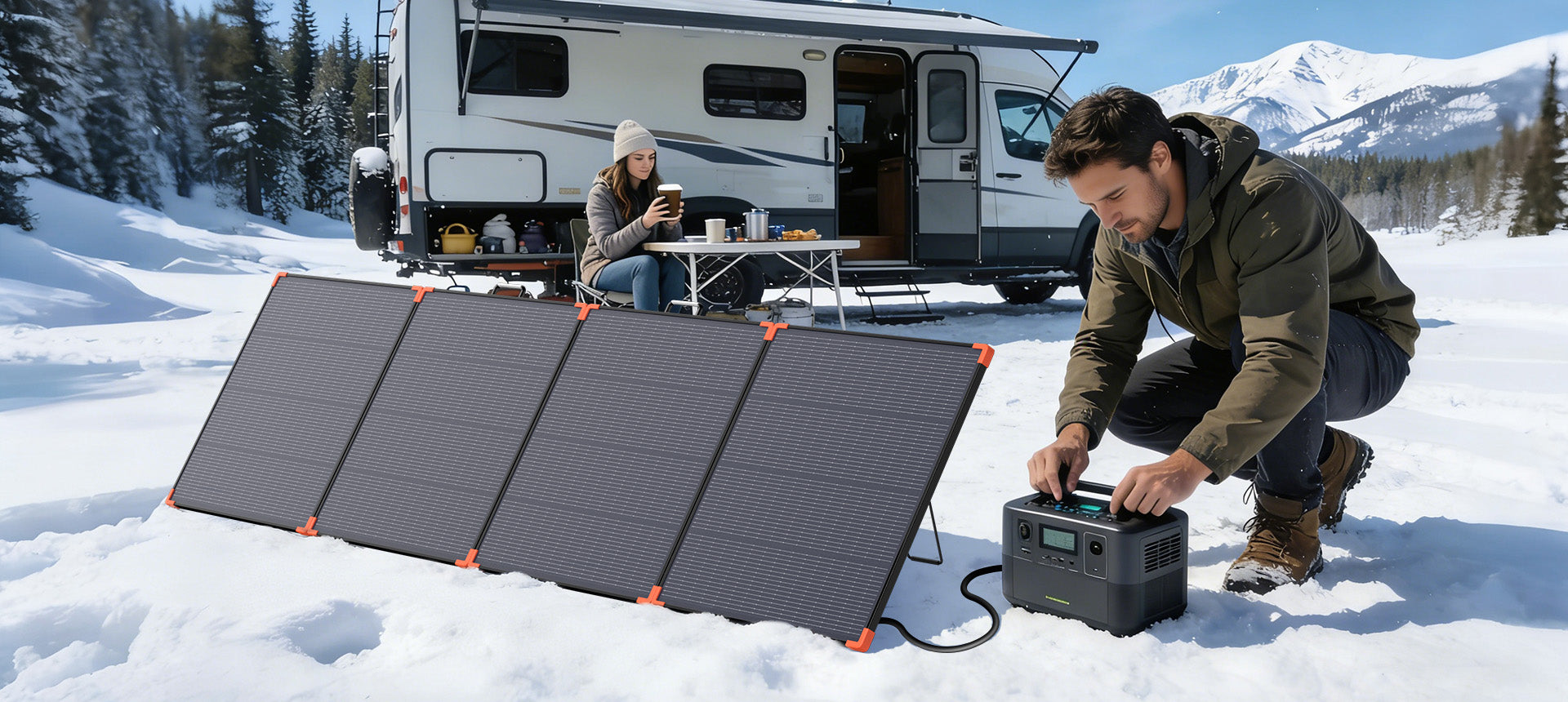 High-power foldable solar panel with an aluminum frame and ETFE surface, featuring monocrystalline silicon cells. PowerFold Series perfect for charging power stations, ideal for camping, RV trips, and mobile outdoor use.