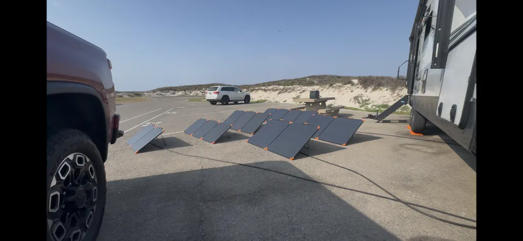 A foldable solar panel built for mobility. The rugged aluminum frame ensures a long lifespan while keeping the weight low for easy transport during camping and overlanding trips.